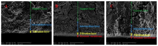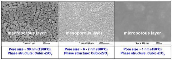 SEM image of three types of ceramic membrane with ZrO2 support. Reproduced with permission from [].