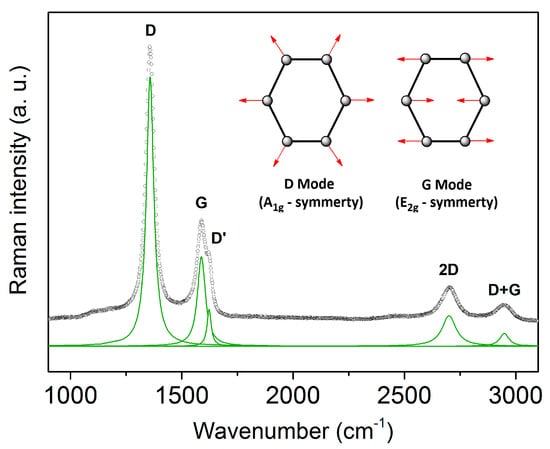 - Pimenta, M.A.; Dresselhaus, G.; Dresselhaus, M.S.; Cançado, L.G.; Jorio, A.; Saito, R. Studying disorder in graphite-based systems by Raman spectroscopy. Phys. Chem. Chem. Phys. 2007, 9, 1276–1291. [Google Scholar] [CrossRef] [PubMed]