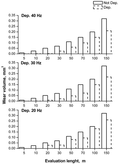 Moreover, significant values were obtained in the early stages of the test; after 20 m of test the wear volume for the coatings deposited at 30 and 40 Hz was almost negligible, while that for the coating formed at 20 Hz was found to be 0.029 mm3. This behavior is due to the reduced thickness of the plated layer. In fact, a shorter testing period is sufficient to reach the substrate that, being softer than the alumina layer, presents a higher wear rate.