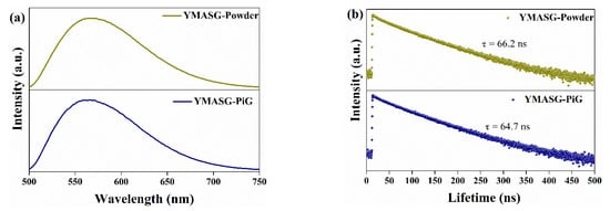 3.3. Microstructure and Luminescence Properties of the PiG Sample