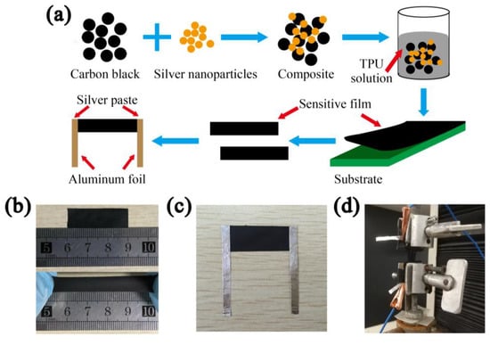 - Zhang, S.; Zhang, H.; Yao, G.; Liao, F.; Gao, M.; Huang, Z.; Li, K.; Lin, Y. Highly stretchable, sensitive, and flexible strain sensors based on silver nanoparticles/carbon nanotubes composites. J. Alloys Compd. 2015, 652, 48–54. [Google Scholar] [CrossRef]
