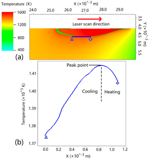 According to the steady state temperature field in Figure 2b, the temperature field along the x coordinate at the bottom of melt pool can be approximated to a moving parabola, as seen in Equation (4).