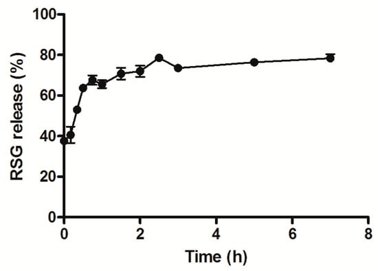 RSG release from nanoparticles in PBS at 37 °C, under sink conditions.