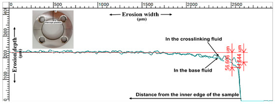 The comparison of the erosion depth between the particles in the base fluid and the crosslinking fluid.