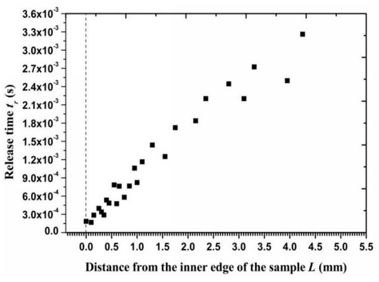 If the distance between the two particles is far greater than the particle diameter and if the acceleration of particles is ignored, the critical inter-particle distance in the release process will be given by