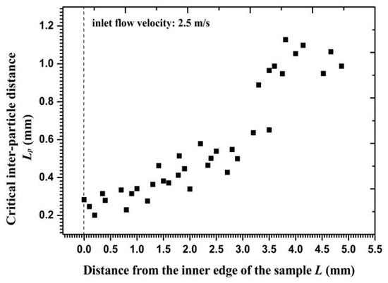 Calculation of the critical interparticle distance: The distance between adjacent particles was calculated when the front particle made contact with the wall. If L < Lp, the subsequent impact on the wall was treated as a clustered particle impact; otherwise, the impact was considered as an independent particle impact.
