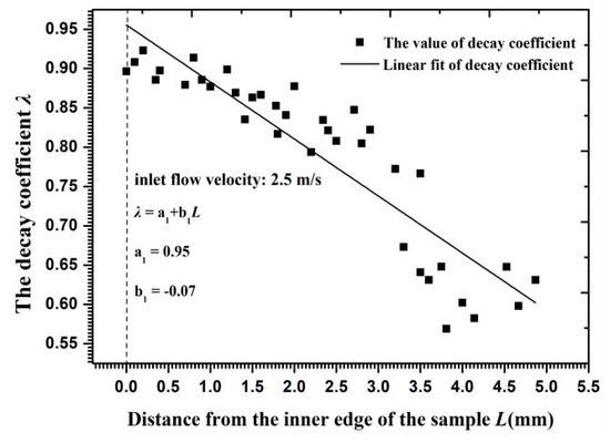 Determination of the decay coefficient: For the clustered particles, the next step was to obtain the decay coefficient λ and the new impact angle for each colliding particle after a particle-particle collision.