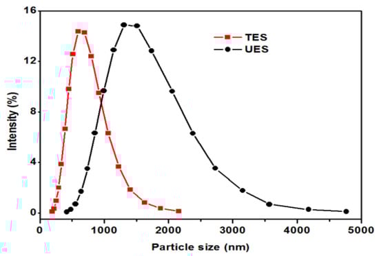 Particles size distribution of UES and TES.