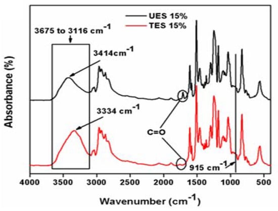 The FTIR spectra of 15% UES and 15% TES filled epoxy composites.