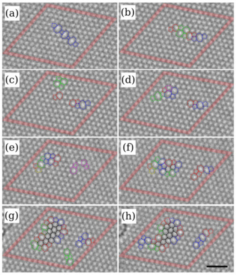 - Kurasch, S.; Kotakoski, J.; Lehtinen, O.J.; Skakalova, V.; Smet, J.H.; Krill, C.; Krasheninnikov, A.V.; Kaiser, U. Atom-by-Atom Observation of Grain Boundary Migration in Graphene. Nano Lett. 2012, 12, 3168–3173. [Google Scholar] [CrossRef] [PubMed]