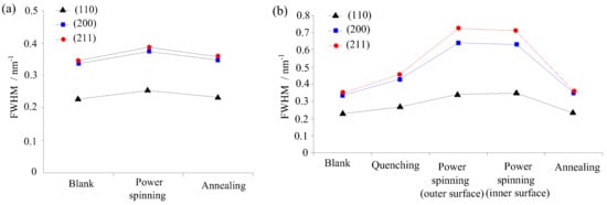 - Xiao, G.F.; Xia, Q.X.; Cheng, X.Q.; Zhou, Y.J. Research on the grain refinement method of cylindrical parts by power spinning. Int. J. Adv. Manuf. Technol. 2015, 78, 1–9. [Google Scholar] [CrossRef]