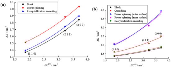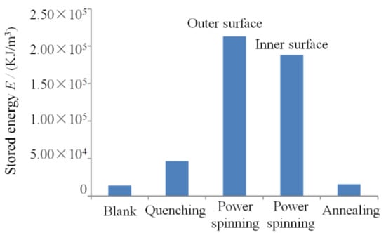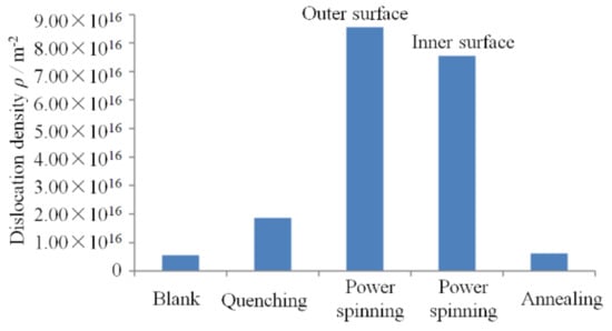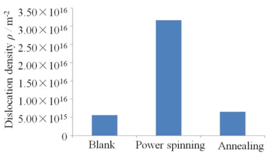 - The dislocation density and storage energy are increased to 10 times that of the blank after quenching and power spinning and decreased to the level of the blank after recrystallization annealing.