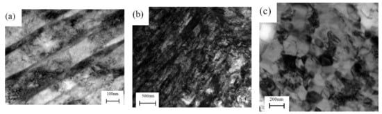 - Huang, X.X.; Cai, D.Y.; Yao, M.; Liu, Q.; Hansen, N. Deformation structure and recrystallization behavior of tensile strained copper. Chin. J. Nonferrous Met. 2001, 11, 31–35. [Google Scholar]