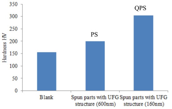 - The tensile strength and hardness of the ASTM 1020 spun parts manufactured by the QPSA method are 815 MPa and 305 HV respectively, while the elongation is decreased to 17.5%.