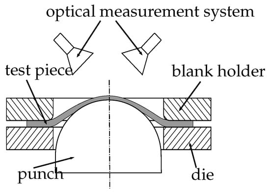 - DIN Deutsches Institut für Normung e.V. Metallische Werkstoffe – Bleche und Bänder – Bestimmung der Grenzformänderungskurve – Teil 2: Bestimmung von Grenzformänderungskurven im Labor; Beuth Verlag: Berlin, Germany, 2008. [Google Scholar]
