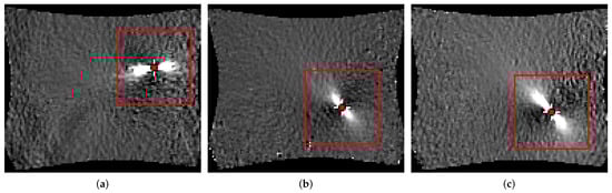 Multiple patches of the region of interest of different geometries: (a) DP800-S050-3 uniaxial; (b) DP800-S110-2 plane strain; (c) DP800-S245-1 biaxial.