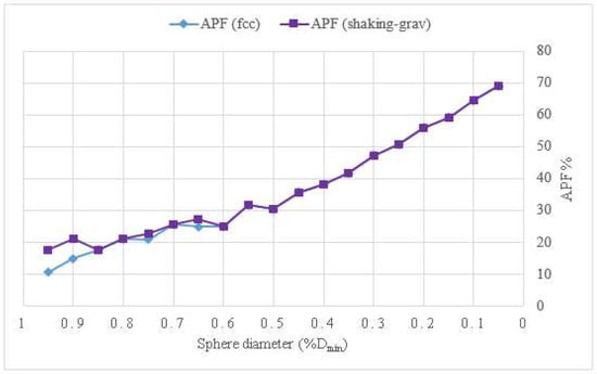 By the previous restrictions, the volume of a sphere intersecting with the wall is not included in the computations. Shaking and gravity procedures consist in simulations of movements similar to random Brownian motions (see e.g., Reference [42]) applied to the initial configuration in order to satisfy two purposes: