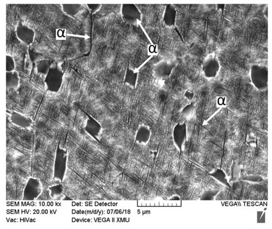 - Barriobero-Vila, P.; Requena, G.; Schwarz, S.; Warchomicka, F.; Buslaps, T. Influence of phase transformation kinetics on the formation of α in a β-quenched Ti–5Al–5Mo–5V–3Cr–1Zr alloy. Acta Mater. 2015, 95, 90–101. [Google Scholar] [CrossRef]