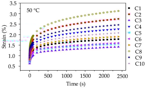 3.2.2. Uniaxial Compression Creep Test Results Based on SLD