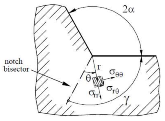 where r and θ is the radial and angular coordinate of a polar coordinate system centred at the notch tip and σθθ is the stress components according to the coordinate system (Figure 5).