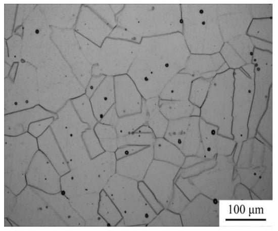 A hot-forged high-Mn austenitic steel prior to hot compression (Figure 2) was used as the starting material. Figure 2 shows the microstructure of Fe-30Mn-0.11C steel with austenite grain size of 106 μm, where the average grain size was calculated using a linear intercept method.