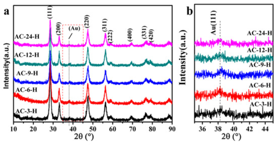 X-ray photoelectron spectra (XPS) of AC-3-H, AC-6-H, AC-9-H, AC-12-H and AC-24-H (a) Ce 3d; (b) Au 4f.
