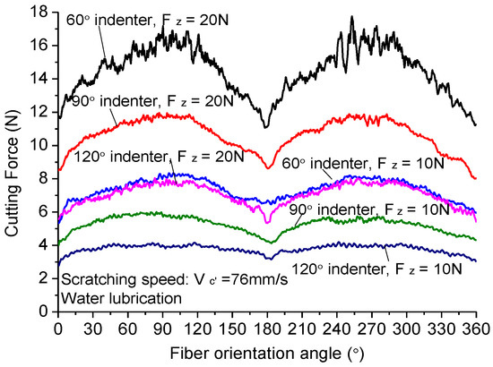 Scratching force varying with fiber orientation.