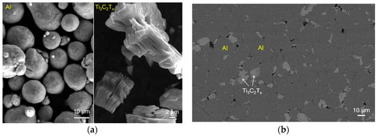 In the 2D MXene group, Ti3C2Tx is the first reported and the most explored material because it is easily synthesized from the Ti3AlC2 precursor using HF solution [1]. The 2D Ti3C2Tx single nanosheet is micrometers in width but less than a nanometer in thickness. Hence, the Ti3C2Tx MXene, with its attractive properties and high aspect ratios, has already been used as a reinforcement in composites. So far, the majority of the current work on composites containing Ti3C2Tx has focused on polymer matrix composites [30,31,32,33,34], but less attention has been devoted to the use of Ti3C2Tx to reinforce metal matrix composites.