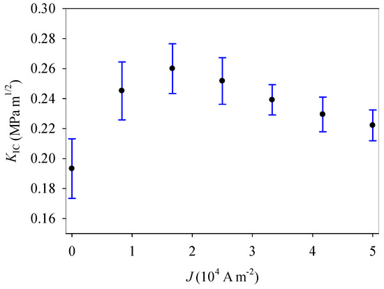 The relationship of KIC with the applied electric current density.