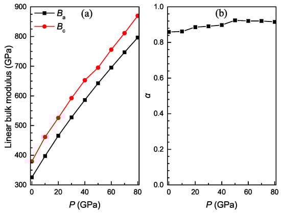 In material science, elastic anisotropy is the directional dependence of the physical properties of materials. Most materials exhibit elastically anisotropic behavior. Some examples are the directional dependence of the bulk modulus, Young’s modulus, shear modulus, and Poisson’s ratio. For hexagonal system, the linear bulk modulus along the a and c principle axes ( and ) are given by [38]