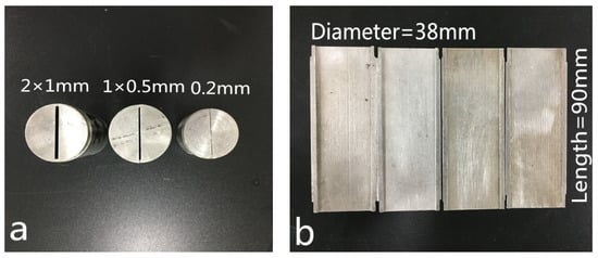In order to evaluate the fracture plugging capacity of LCMs, a fracture sealing testing apparatus (Figure 2, Instrument Factory of Petroleum University, Dongying, China) with tapered and slotted stainless steel discs (Figure 3) that simulate natural/induced fractures was adopted. Firstly, tapered slots were placed before the output valve. Then, fluids containing LCMs were forced to flow at a constant stirring rate of 100 rpm through the discs with a gradual increase of pressure. The applied pressure was initially set to be 1.0 MPa and kept stable for 10 min. If the LCMs effectively sealed the fracture and the pressure declined within 5%, the pressure was continuously increased and the volume of fluid loss was recorded. Once a continuous leakage of fluid occurred, it was asserted that the LCMs had reached the maximum pressure bearing capacity and the test was ceased. Treatments with lower fluid loss values correspond to effectiveness of mitigating the loss. However, because of the limitation that the maximum applied pressure is 8.0 MPa for the equipment, the maximum pressure at which the formed seal breaks and fluid loss resumes was not measured.