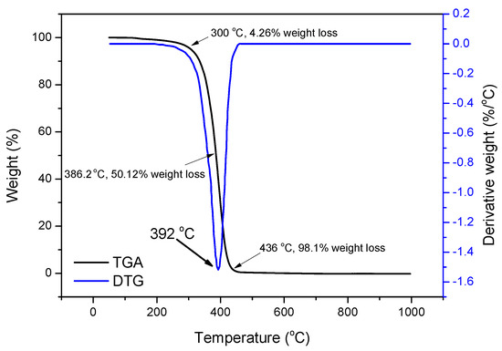 The thermal stability is of vital importance for OAP because it has to experience downhole high temperature conditions. Figure 6 presents the resolution of weight percent of OAP sample with the change of temperature and the first derivative thermogravimetric curve. It could be seen that before 100 °C little weight loss was observed. The copolymer began to degrade rapidly when the temperature reached 300 °C. The sample weight loss is about 50.12% at 386 °C. The maximum pyrolysis rate occurred at about 392 °C. When the temperature reached 436 °C, the sample came to the total pyrolysis. The results indicated that OAP had a good thermal stability and could be used in high temperature environments.