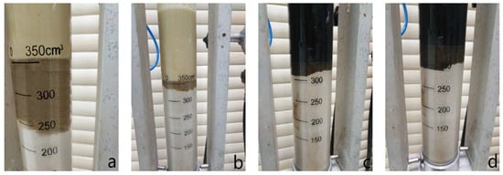 Comparison of the sand bed invasion depths for various fluid loss additives. Note: (a) control sample; (b) OAP; (c) asphaltic additive; (d) modified lignite.