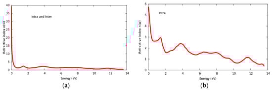 (a) Refractive index n(ω) within inter and intra; (b) Refractive index n(ω) within intra for SrRhO3 compound.