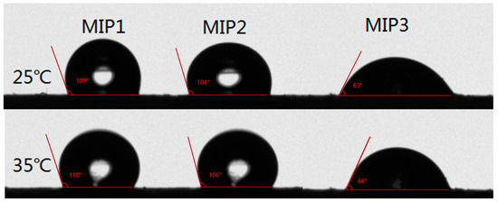 The test of static water contact angles of the different MIPs at 25 °C and 35 °C, respectively.