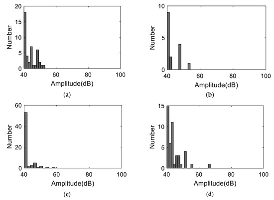 The AE amplitude histograms (a) S3, (b) S4, (c) S5, and (d) S6.