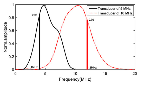 The sensitivity curves of UT transducers provided by manufacturer (Olympus Inc., Waltham, MA, USA).