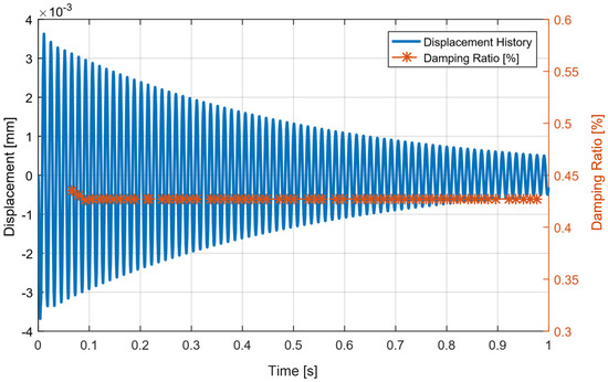 The responses of the free ends of the models were recorded, and a transient response was used to measure the damping ratio, using the logarithmic decay method as follows: