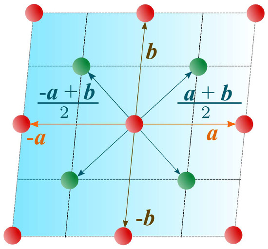 To obtain the Hamiltonian suitable for a perturbative calculation, we apply canonical quantization and incorporate the structure of the lattice presented in Figure 1. Basically, this means that we wish to construct the free Hamiltonian with lattice exciton fields that reproduces the exciton dispersion of Equation (11):