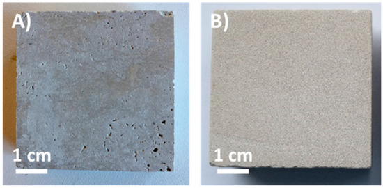 Photographs of Ajarte (A) and Obernkirchen (B) stone specimens.