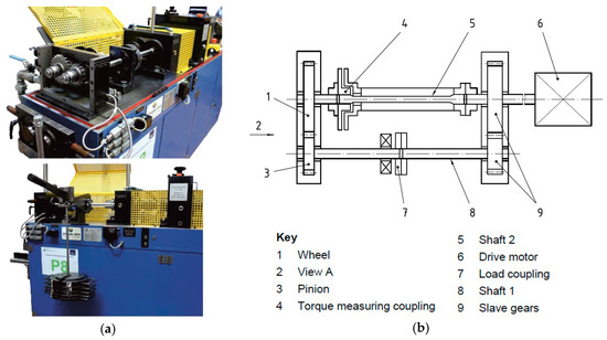 FZG gear test rig: (a) photos; (b) schematic drawings.