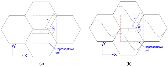 The idealized structure of honeycomb core: (a) Traditional hexagonal honeycomb, (b) Taiji honeycomb.