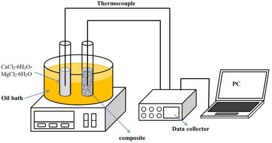 Different amounts of MgCl2·6H2O (purity: 98%, Tianjin Kemiou Chemical Reagent Co., Ltd., Tianjin, China) were mixed with the CaCl2∙6H2O to prepare the CaCl2∙6H2O-MgCl2∙6H2O eutectics. The mass fractions of MgCl2·6H2O varied from 10% to 25% with an interval of 5%. Each sample was heated to 50 °C and kept for 1 h until they were fully melted.