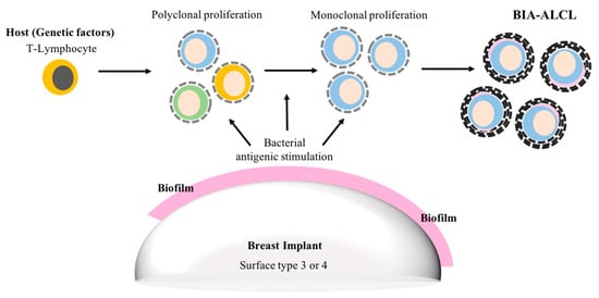One theory is that biofilm infection, combined with host factors such as the patient’s genetic background and their immune response, activate T-lymphocytes and trigger polyclonal proliferation and, with time, in some cases monoclonal proliferation and the eventual development of ALCL [] Figure 2.