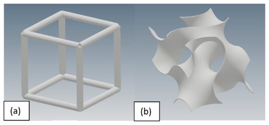 Unit cell architecture: (a) cube; and (b) gyroid.