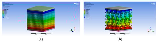 After modeling of samples in CAD system (Autodesk Inventor 2017, Autodesk , San Rafael, CA, USA), samples were exported to simulation system for finite element analysis. In this research, titanium alloy Ti6Al4V was selected as a material to be used for samples manufacturing due to its biocompatibility and number of biomedical applications. The same material was used for analysis of samples in simulation software, ANSYS (Release 16.2, ANSYS, Inc., Canonsburg, PA, USA). Since the mechanical properties of Ti6Al4V produced by additive manufacturing has been proven to be different from properties of Ti6Al4V produced by conventional manufacturing, material properties of additively manufactured Ti6Al4V were taken from the literature [15] and added to ANSYS as a new material. The material mechanical properties were applied to each imported sample for analysis. Mechanical properties of materials used for simulation are presented in Table 1.