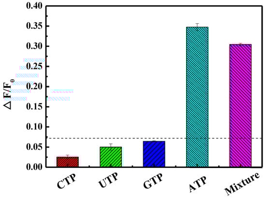 - Tang, J.L.; Li, C.Y.; Li, Y.F.; Zou, C.X. A ratiometric fluorescent probe with unexpected high selectivity for ATP and its application in cell imaging. Chem. Commun. 2014, 50, 15411–15414. [Google Scholar] [CrossRef] [PubMed]