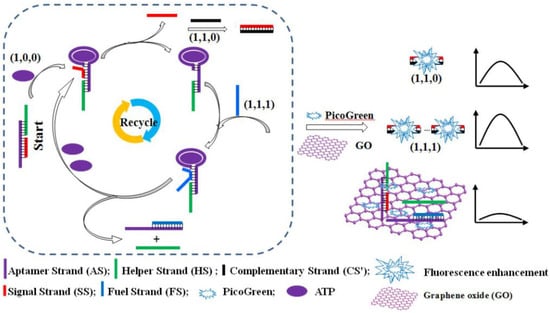 - Wang, L.; Zhu, J.; Han, L.; Jin, L.; Zhu, C.; Wang, E.; Dong, S. Graphene-based aptamer logic gates and their application to multiplex detection. ACS Nano 2012, 6, 6659–6666. [Google Scholar] [CrossRef] [PubMed]