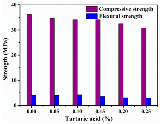 The compressive and flexural strength of the SAC with different additions of tartaric acid after curing 1 day.