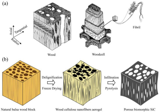 - Ramírez-Rico, J.; Martínez-Fernandez, J.; Singh, M. Biomorphic ceramics from wood-derived precursors. Int. Mater. Rev. 2017, 62, 465–485. [Google Scholar] [CrossRef]